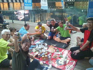 マラソン電車と化して、ほぼランナーで貸し切り状態です。