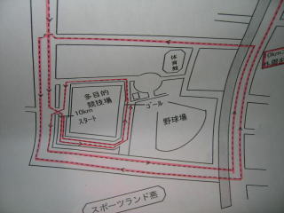 ゴール目指して、多目的競技場の外周を半周です。