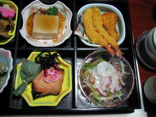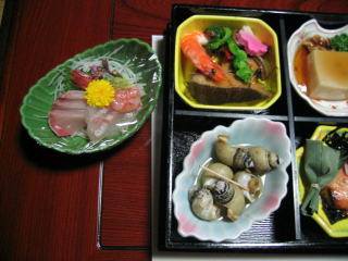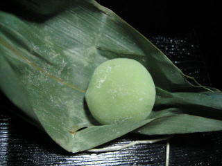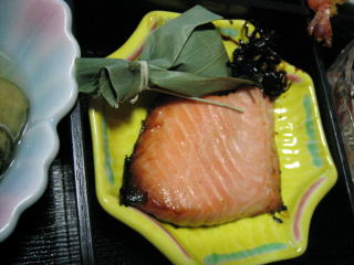 焼鮭の皿の笹包みからお饅頭が出てきました。