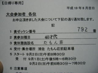 事前にゼッケンと休憩施設を知らせるハガキが届きます。