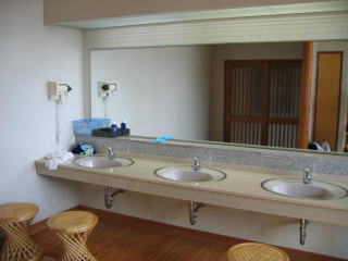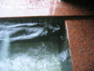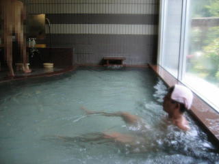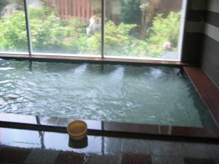 大きな浴槽が一つ、お湯はわずかに白濁しています。