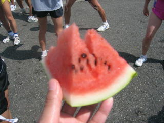 甘いスイカに麦茶が食べ放題、飲み放題ですが、20キロも走ってくるとそんなに食べれるものではありません。