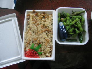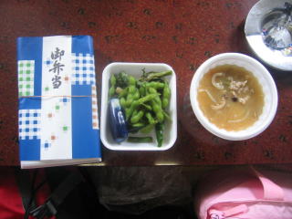 美味しい弁当にトン汁、お新香、枝豆もいただけます。