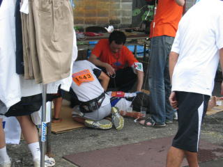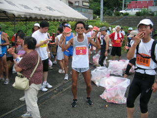 そろそろスタートして3時間が経過しようとするころ、2位ランナーゴール、両脇を役員に抱えられ、救護へ連れて行かれました。