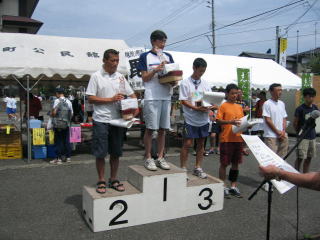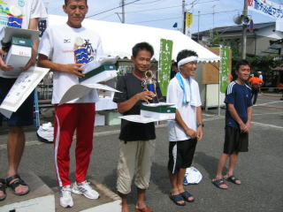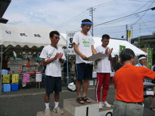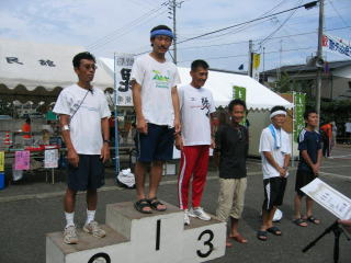 お昼12時から1周のハーフの表彰式、まずは高校〜20歳代の部です。