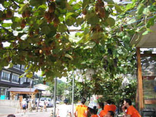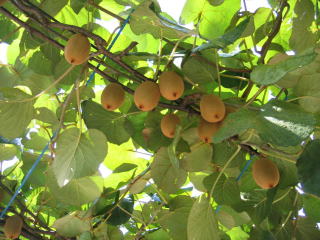何気なく日陰を探すと、なんとキューイーが実っています。