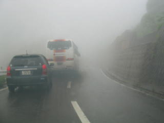 白根山を登りますが、霧と大型バスに阻まれトロトロと登ります。