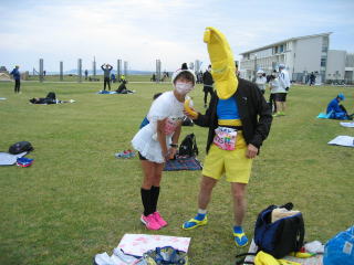 先にゴールしたマッコリさんは、もうすでに着替えが終わっています。