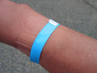 夕日のドーム、入口で検温があり、問題なければリストバンドを装着し、中に入れます。