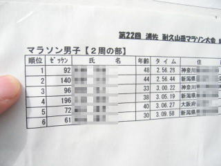 黒豹さんが2位で2.56.44、スイケンさんが4位で3.05.19、すご過ぎます。