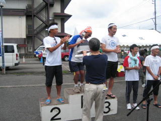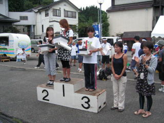 1周の表彰式はすでに終わったようで、2周の男女の表彰式が1時30分からの予定です。
