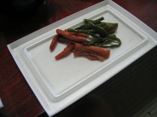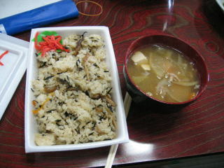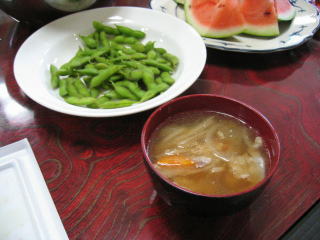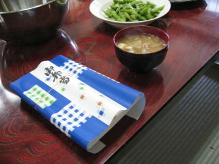 お弁当も、お新香も、枝豆も美味しい、とん汁もお替りできます。