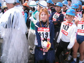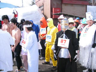 3人組、この被り物で完走は立派、普段は相当鍛えているものと思われます。
