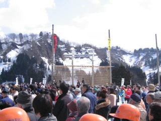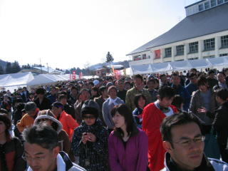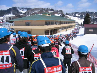 「騎馬止め破り」を越えるとそこはスタート会場、たくさんの観客の応援があります。