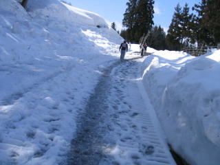 この先は「急勾配」、「雪で滑る」、「疲れた」で完全歩きです。