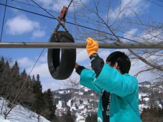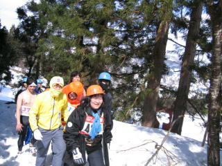 「地獄谷渡り」も無事こなし、ロープを伝って急な坂を登ります。