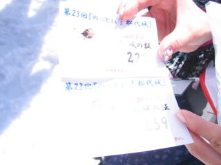 ゴールするともらえる「入城の証」、これがハワイなどの抽選券です。