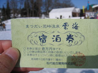 釜ゆでの刑」は「まつだい芝峠温泉 雲海」の一万円の商品券です。