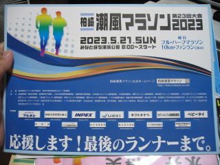 令和5年5月21日、柏崎市の「第23回柏崎潮風マラソン大会」のフルマラソン(117回目)に参加しました。