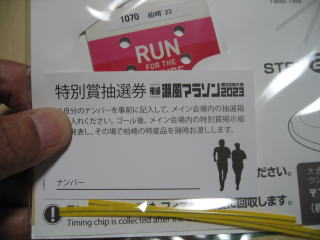 特別賞抽選券も付いています、見附刈谷田ハーフでも温泉入浴券?が当たったので今回も期待しています。