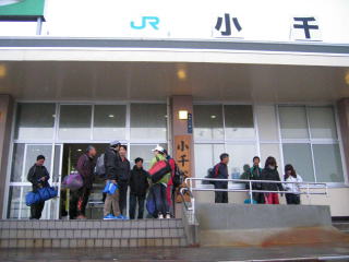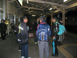 小千谷駅8時46分到着、たくさんのメンバーがこの電車に乗っていました、残念ながらあいにくの雨です。