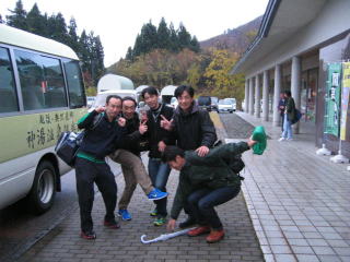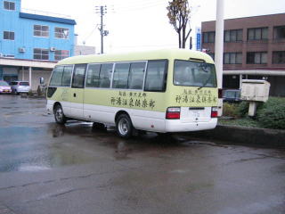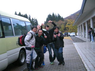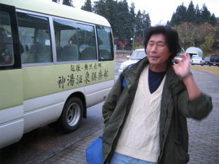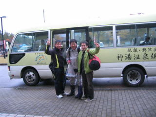 諏訪部さんたち小千谷組と合流し、神湯温泉倶楽部の送迎バスで神湯温泉へ向かいます。