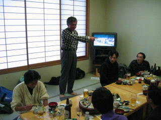 午後1時10分、定刻から10分遅れで忘年会の開宴です。