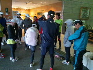 冷たい雨ですが、だれ一人「止めようか!?」とは言いません、根っからのランナー集合です。