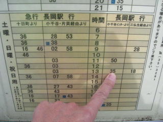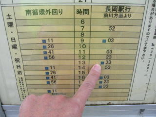 前川から来る13時33分か、小千谷インターから来る13時35分の、先にきた方に乗ります。