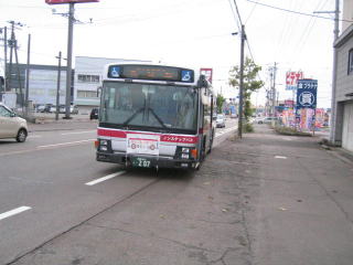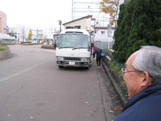 前川からのバスが時刻表通りに先に来ました、しかし市立劇場経由で遠回りです。
