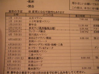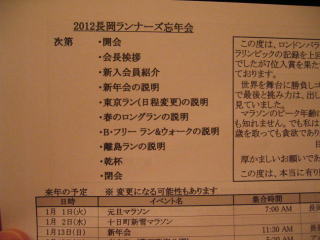 2012長岡ランナーズ忘年会式次第、来年の予定表が配られました。