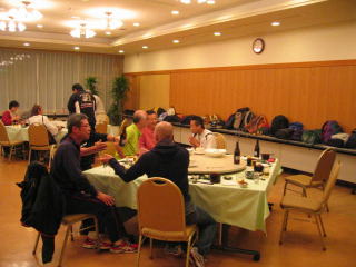 皆さん帰る準備をしていますが、まだ飲んでします。