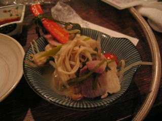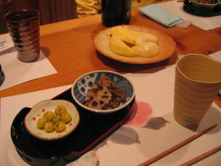 焼酎のお湯割と、お腹が一杯なので箸休め程度のお料理をお願いしました。