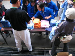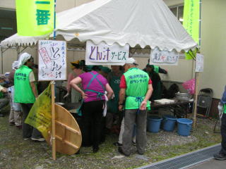 ゴール後のお茶やトン汁の用意が始まっています。