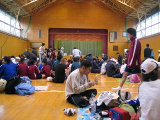 11時予定のおにぎりが20分も遅れていますが、ゴール後はみなさん嬉しそうです。