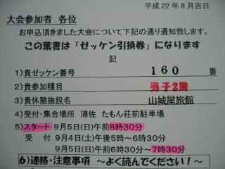 事前にナンバーカードと休憩施設を書いたハガキが届きます。