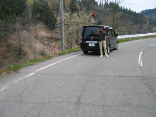 山古志の山を一周して川口のJR上越線沿線を走ります、諏訪部さんが安全確認の巡回中です。