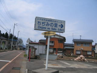 路面のチョーク書きの矢印に注意しながら、あとは迷わずに「ちぢみの里」まで無事ゴールしました。