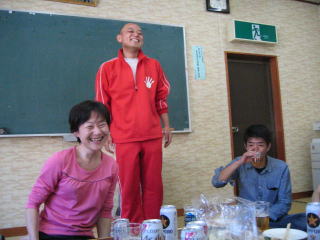 おにぎりやお惣菜、焼肉、漬物もあって、飲み放題で会費は2.000円、手作りの懇親会で安くて楽しい。