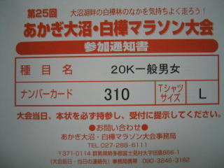 平成18年8月 群馬県富士見村の「第25回あかぎ大沼白樺マラソン大会」に参加しました。