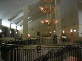緑色のスタッフジャンパーを着た方が色々案内をしています。