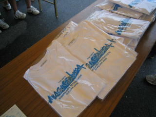 ゴールして計測用チップを返還、参加賞のTシャツ(MIZUNOのポリエステル100%)と交換です。