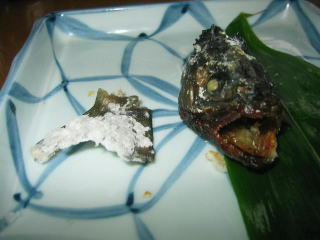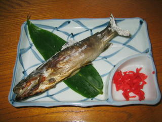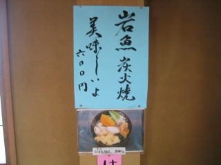 朝のお店に行って「岩魚炭火焼」600円、「お切込うどん」800円をいただきます。