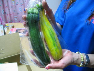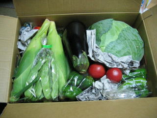 皮付きとうもろこし5本、大きなナス1本、キャベツ1個、トマト4個などなど。