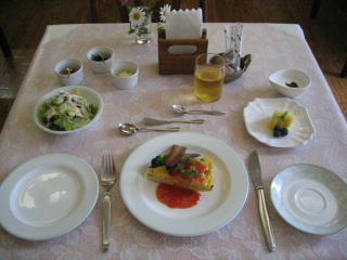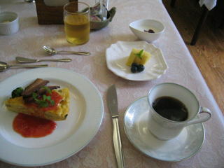 朝は6時20分に起きて6時30分から1階の食堂で朝食です。