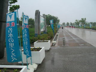 朝6時半に起きて、7時から朝食、外は雨ですが参加賞をもらいに行きます。