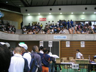 ハーフ参加者の駐車場は違うところで、シャトルバスでこの会場入りするのですが、直接来ました。