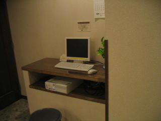 フロント脇にはパソコンコーナーがありますが、電子レンジは見当たりませんでした。