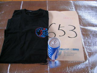 参加賞はTシャツとポカリ、Tシャツはその場でサイズと色を選べます。