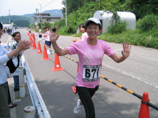 高場山RCの諏訪部さん、綺麗なお姉さんも笑顔でゴール。